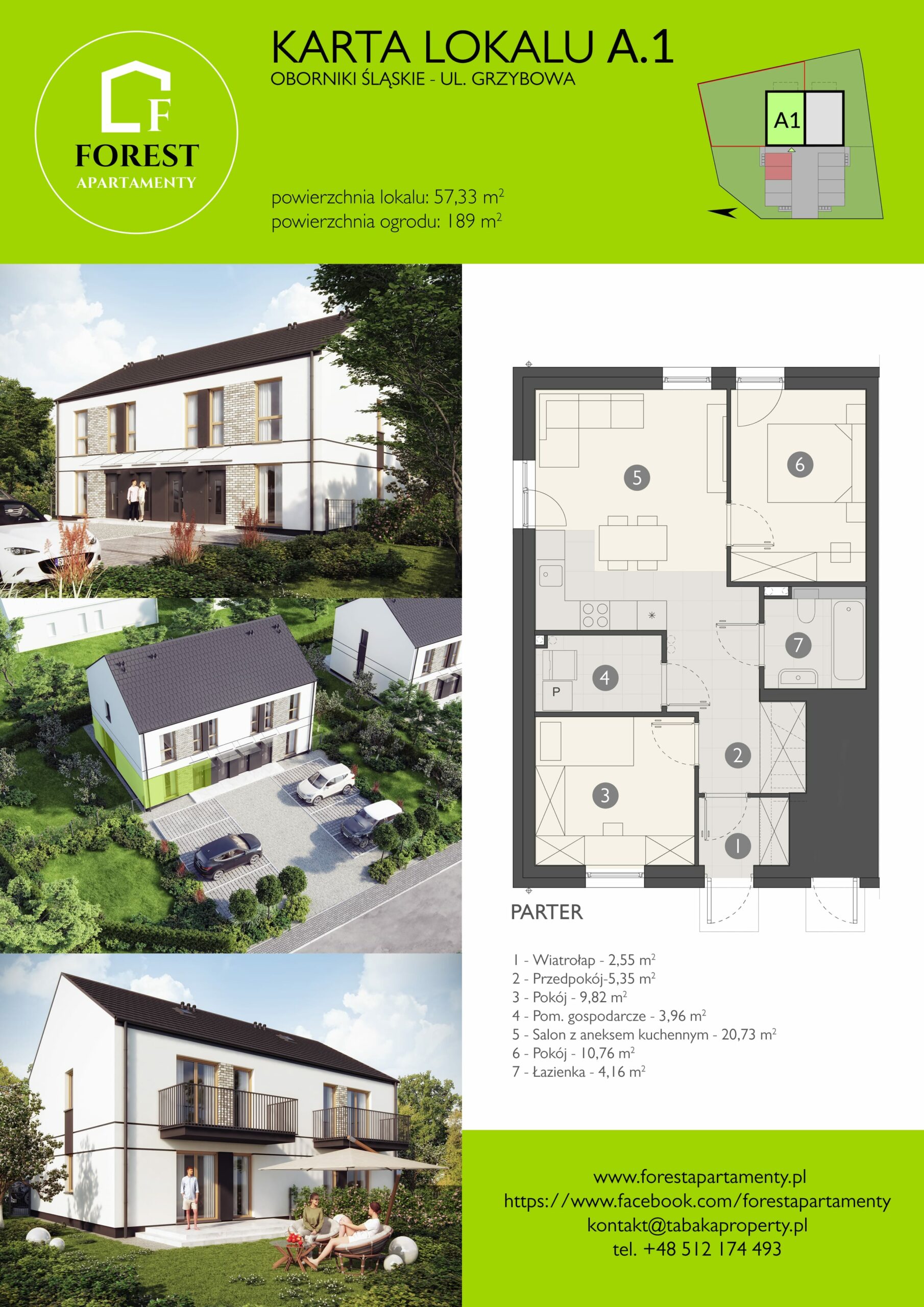 | A1 | 57,33 m2 | ok. 189 m2 | – | – | 2 | Dostępne |