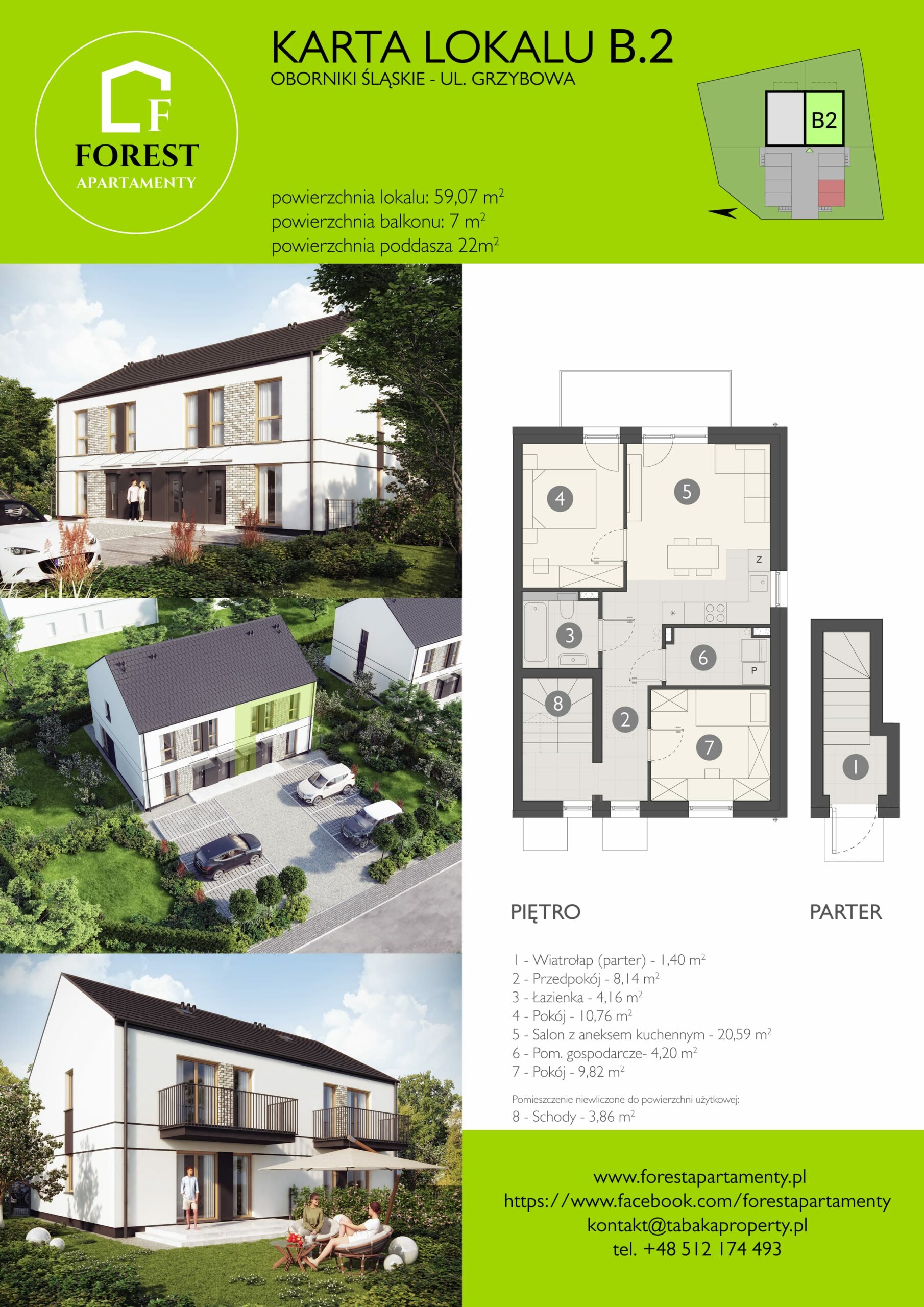 | B2 | 59,07 m2 | – | 7 m2 | 22 m2 | 2 | Dostępne |